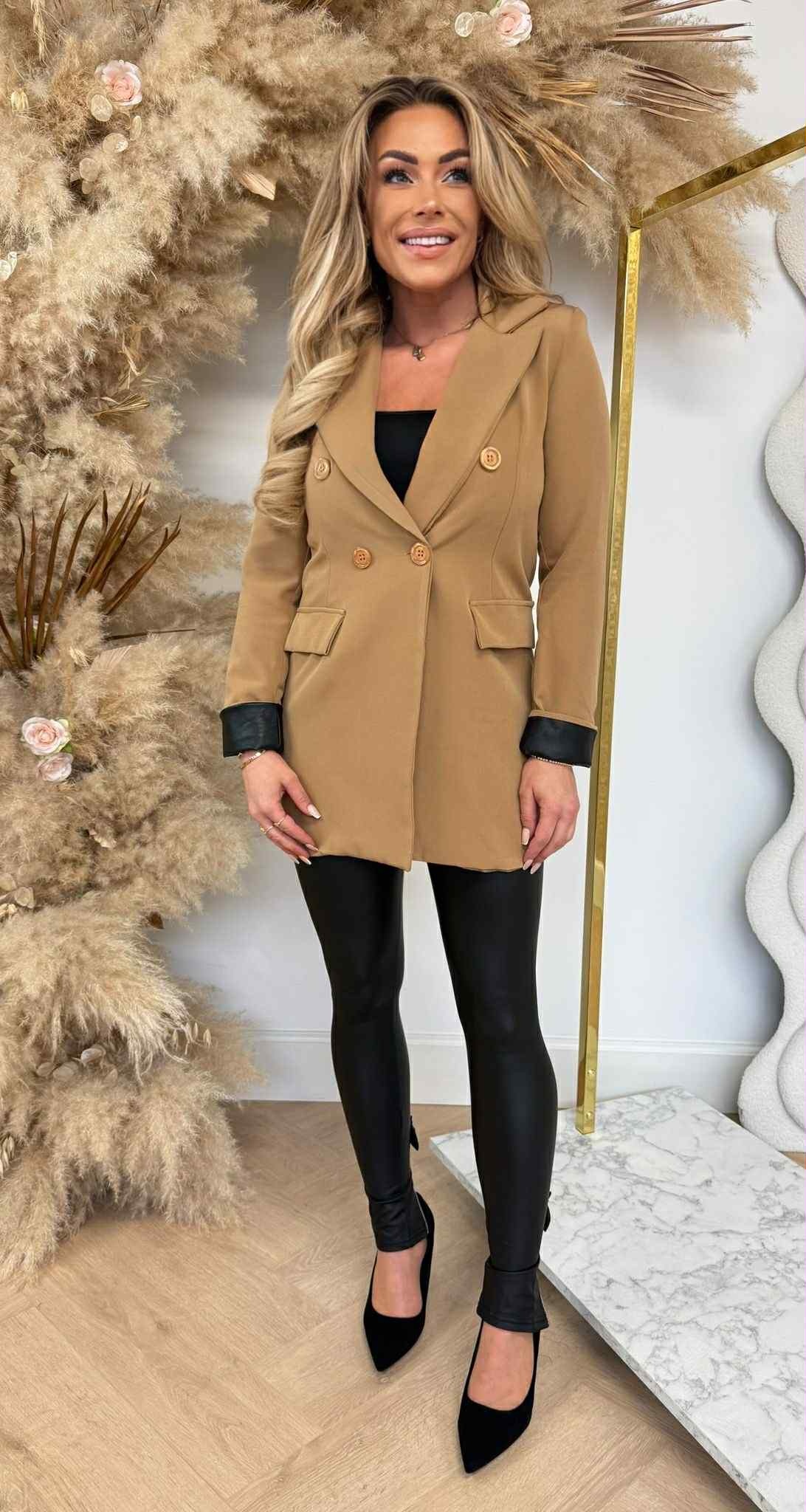 OMSLAG LEATHER LOOK BLAZER CAMEL