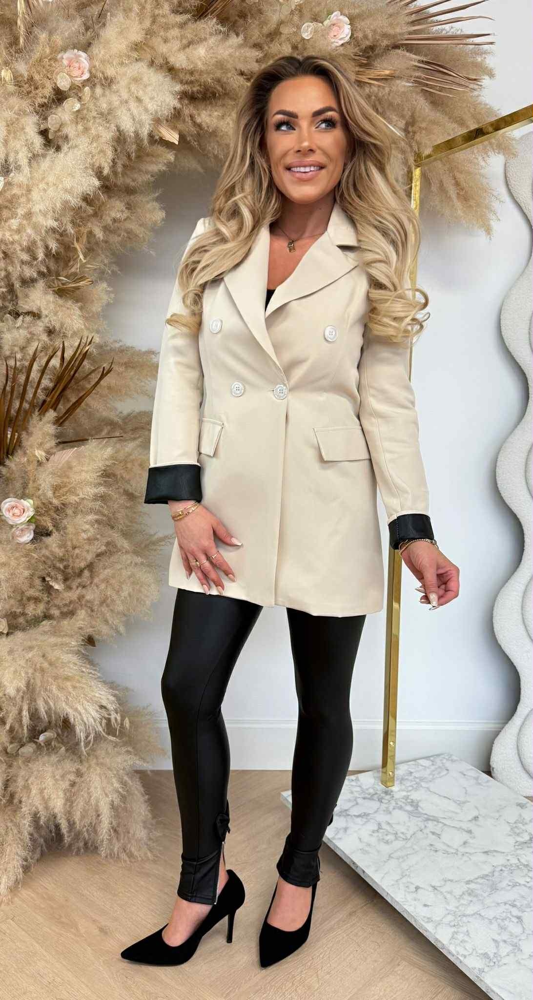 OMSLAG LEATHER LOOK BLAZER BEIGE