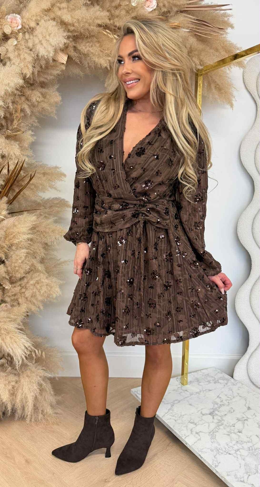 PARI SEQUIN DRESS 5496-3 COFFEE