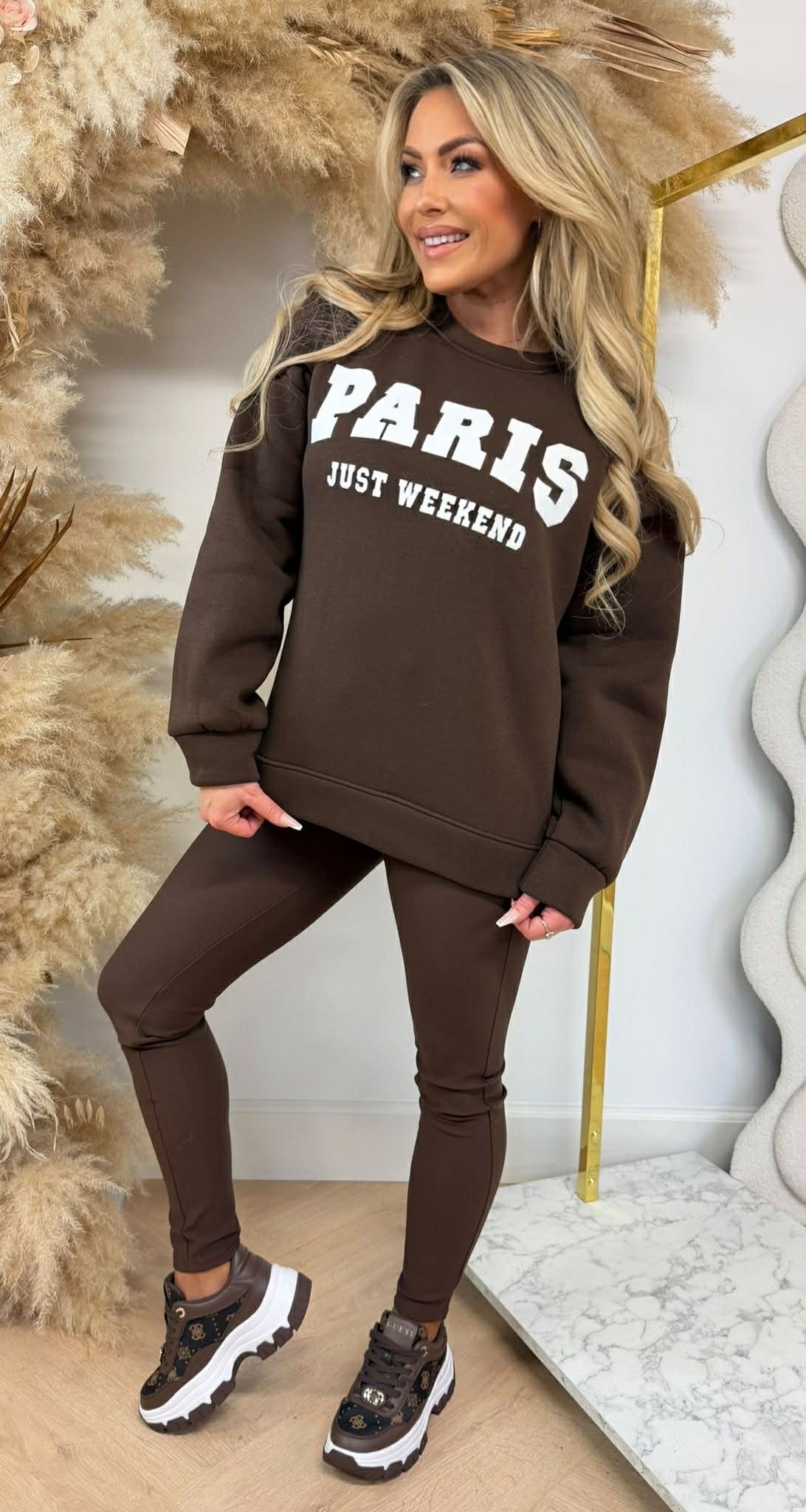 PARIS JUST WEEKEND FLEECE SWEAT *L* CHOCO