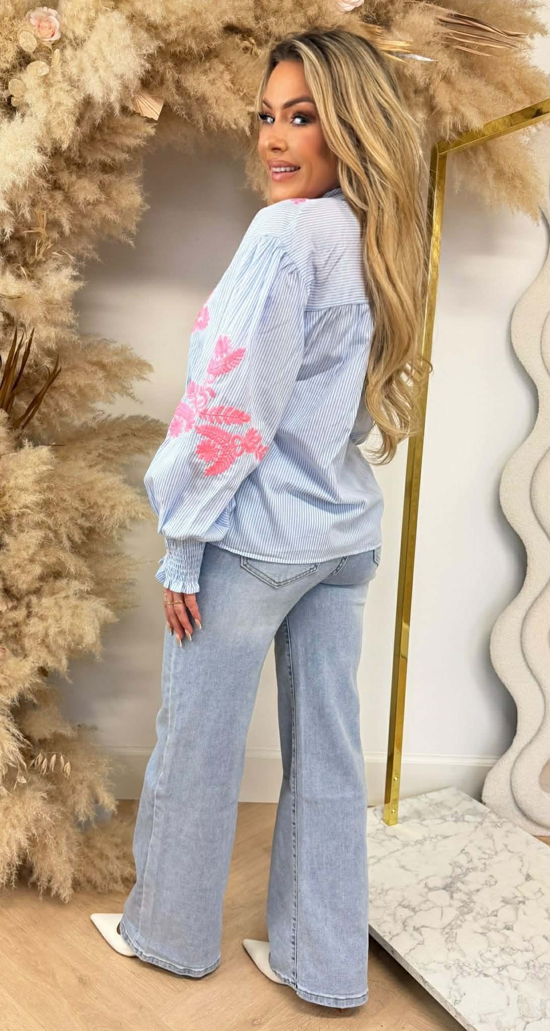 PEN STRIPE PRINT BLOUSE 356 BLUE