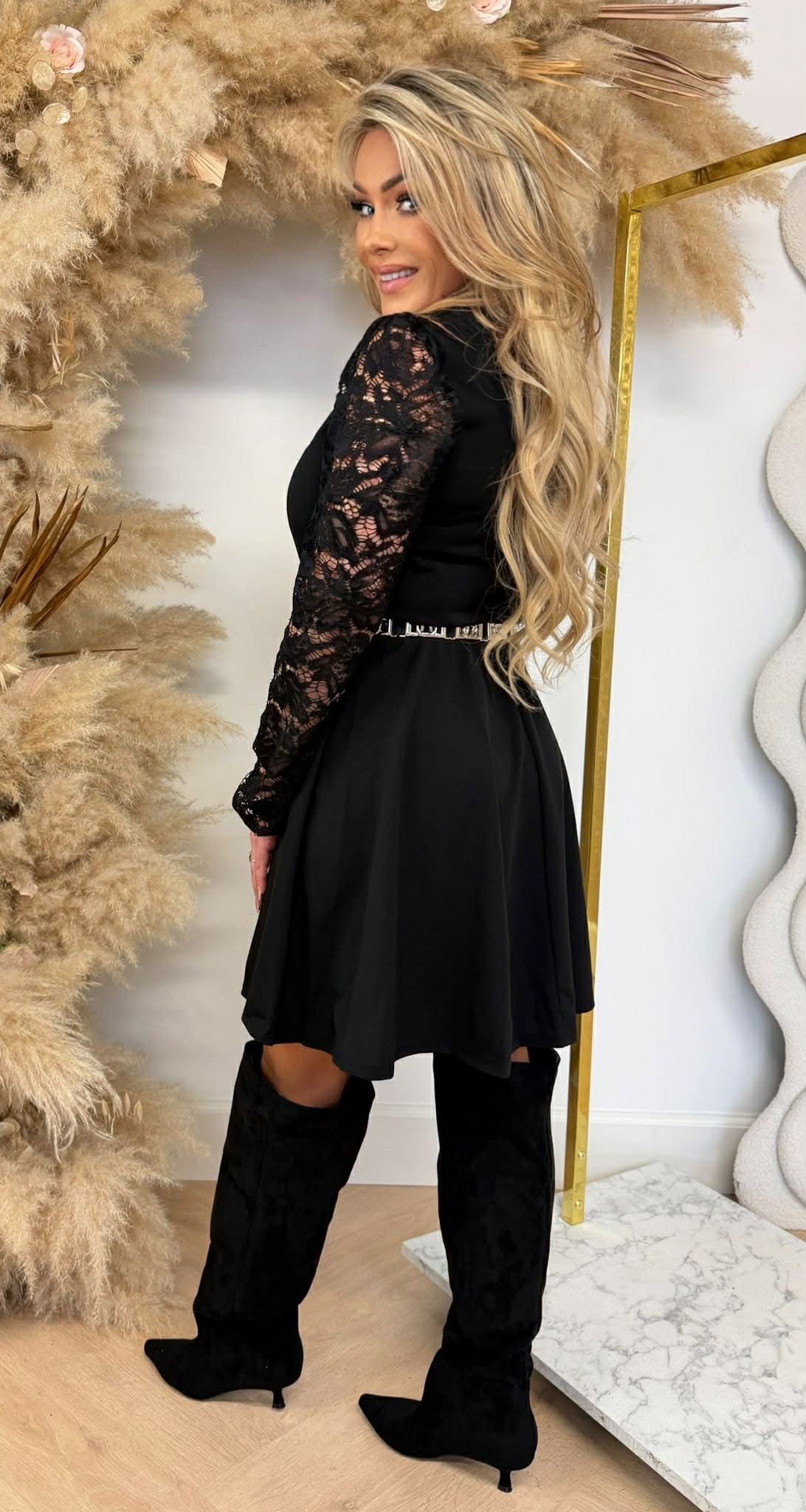 PEPLUM LACE SLEEVE DRESS 32098 BLACK