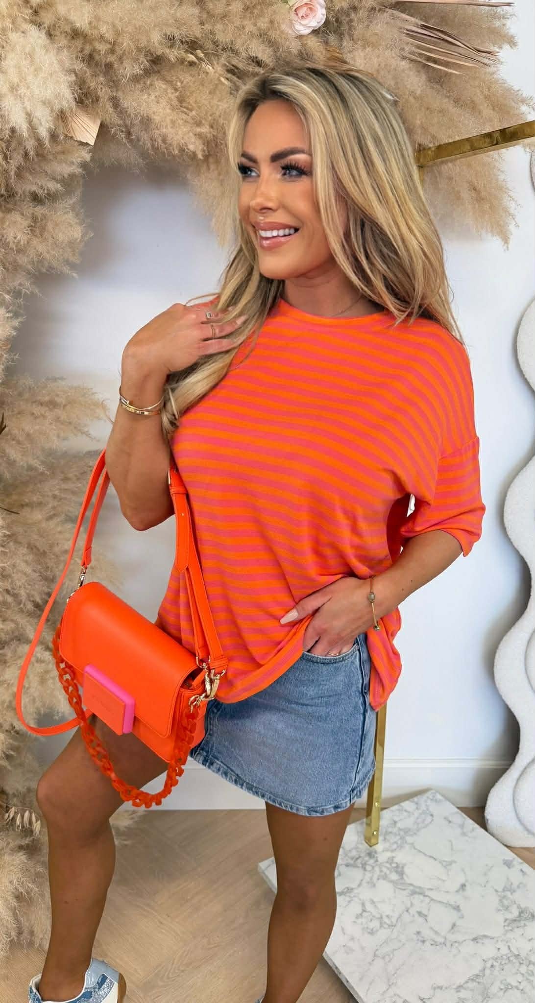 WE LOVE STRIPES! Deze nieuwe shortsleeve tee is onmisbaar in jouw garderobe! Strepen zijn tijdloos en het hele jaar door te dragen, love it! Hoe leuk is deze kleurencombinatie?