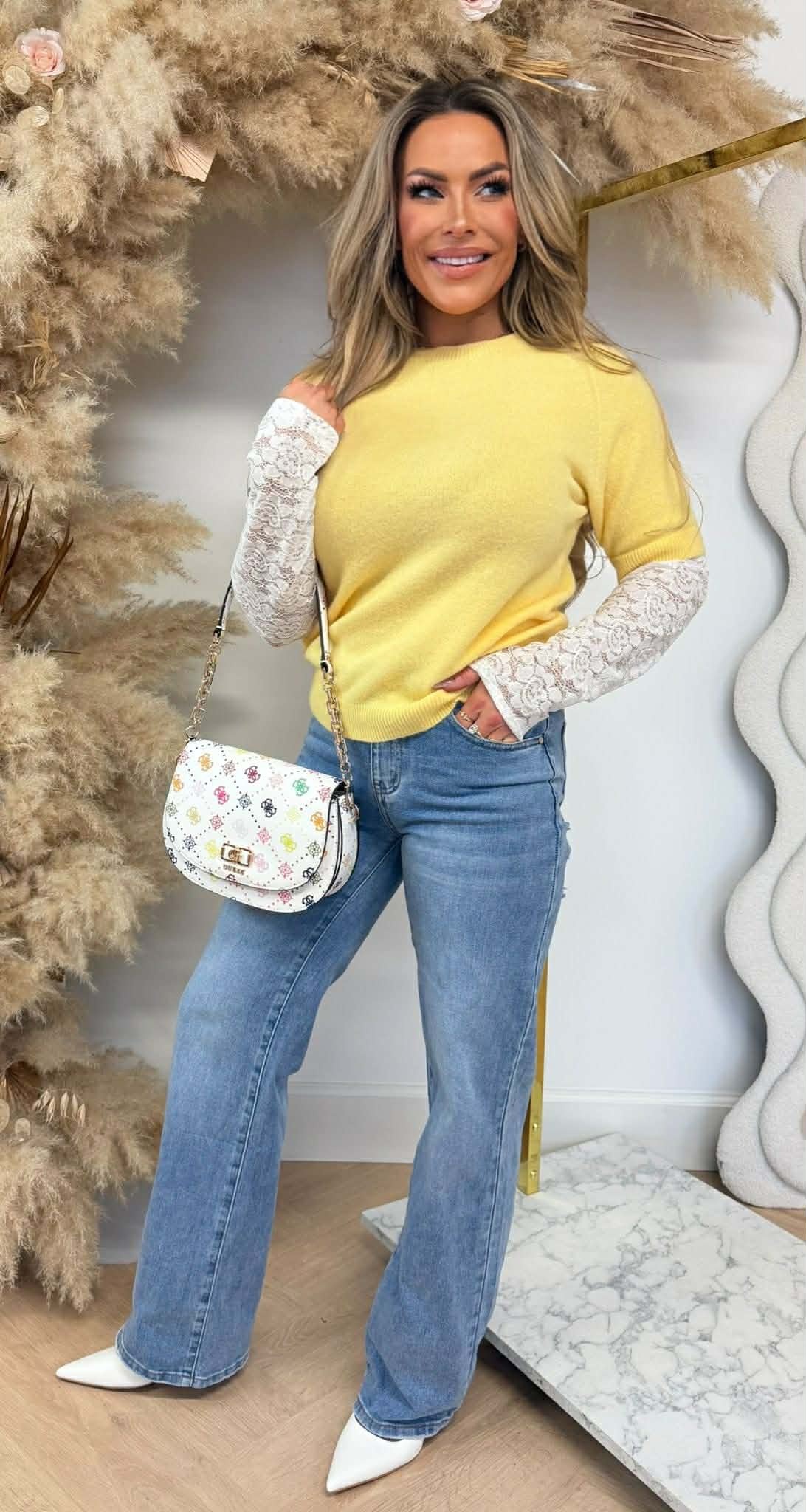 POPPY FLOWER LACE SLEEVE SWEAT YELLOW