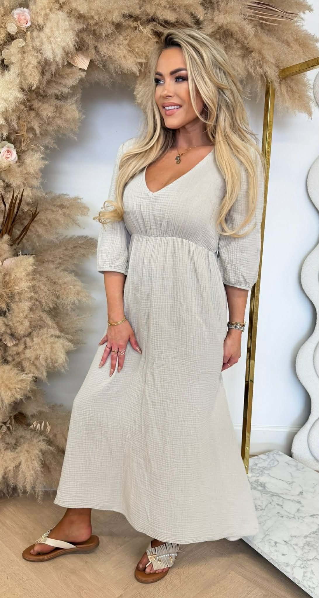 PROMISE COTTON MAXI DRESS BEIGE