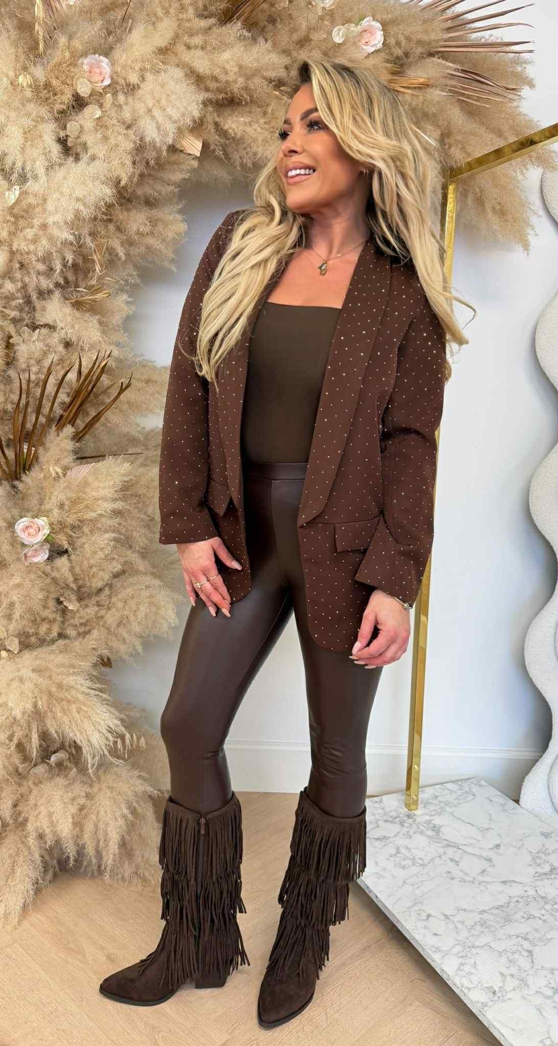 RHINESTONE BLAZER BROWN