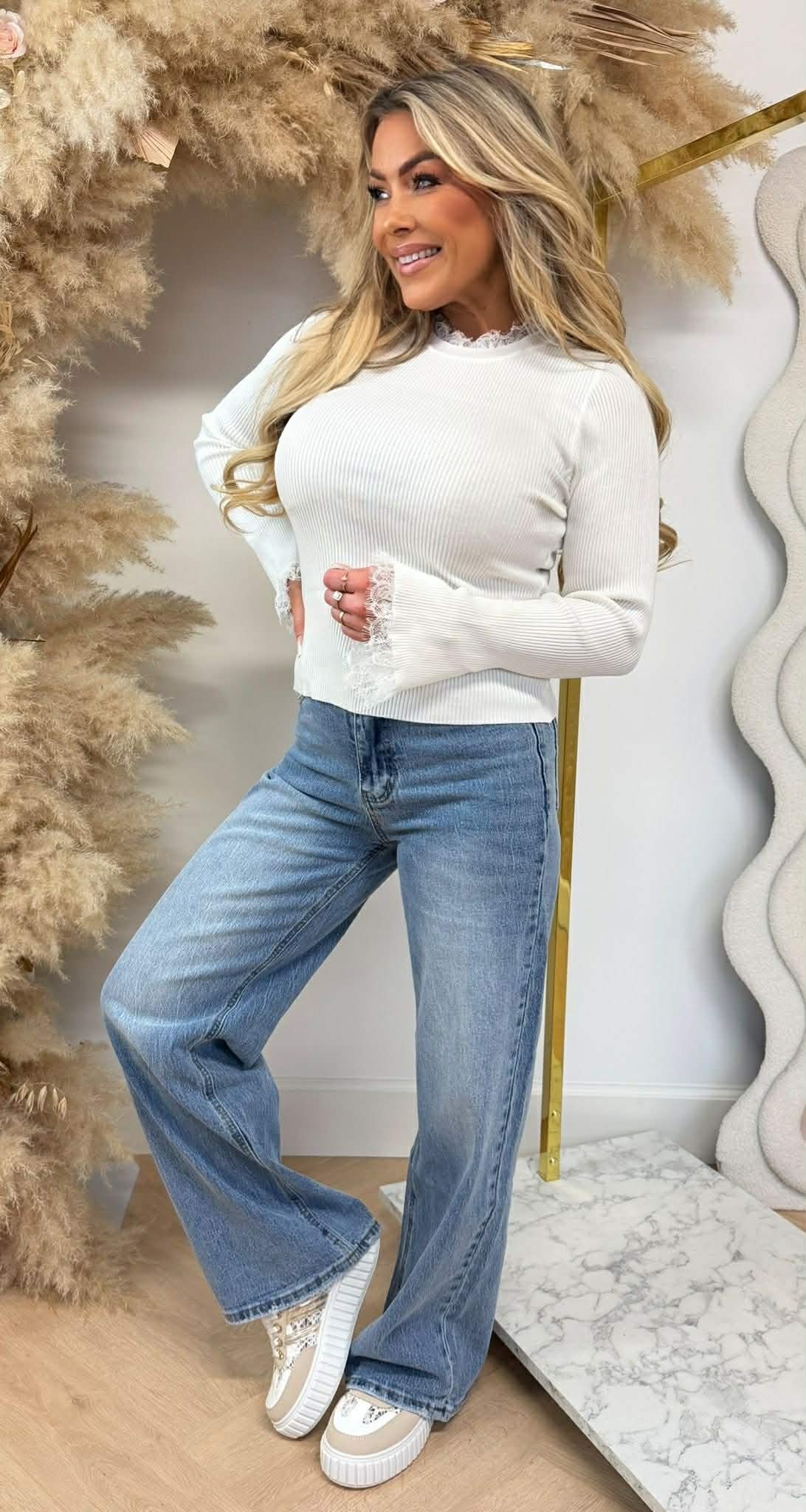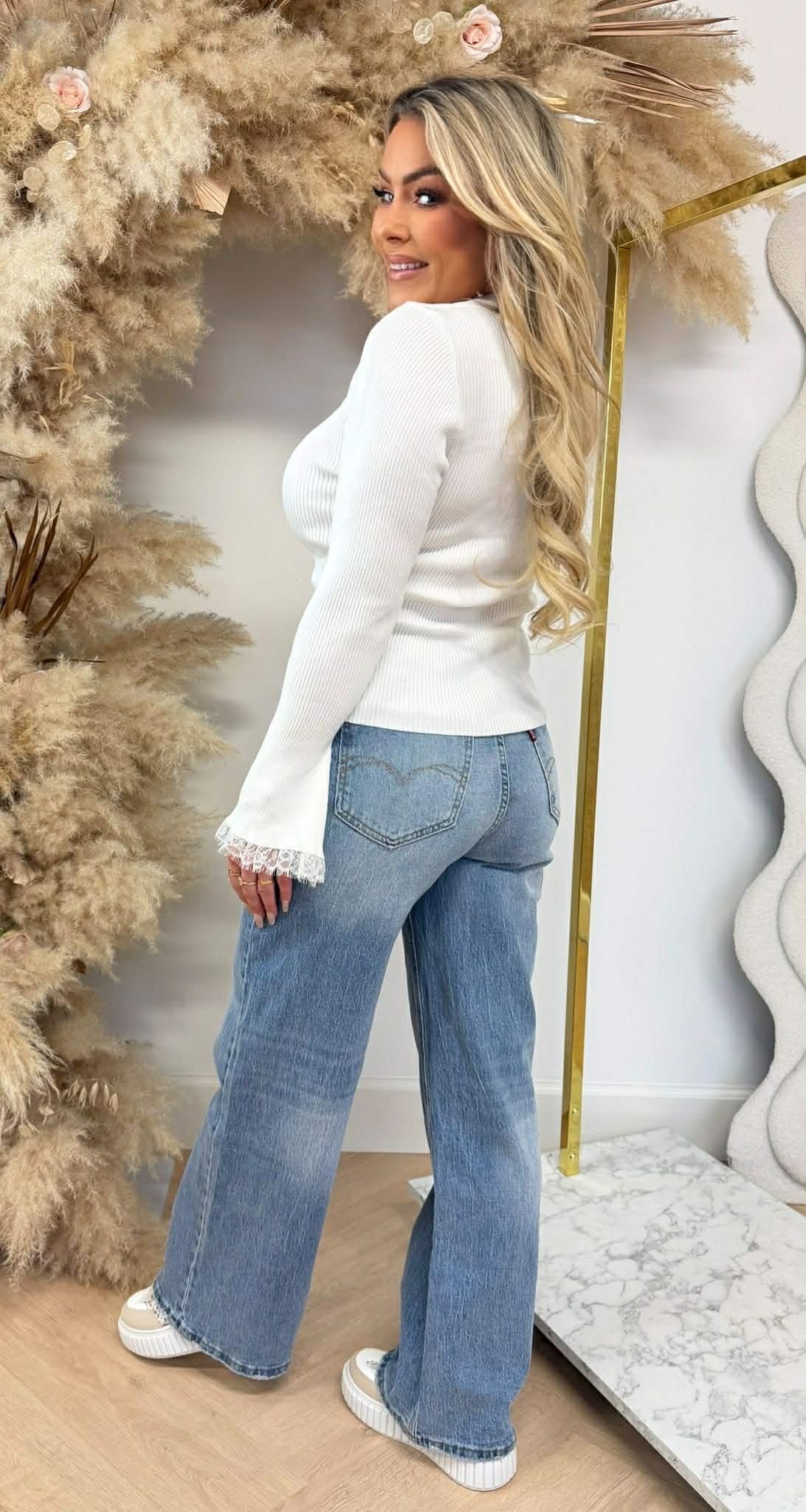 WOW! Hoe geweldig is deze top! Een aansluitend model, kant én flared mouwen. AMAZING! Ideaal voor een feestje!