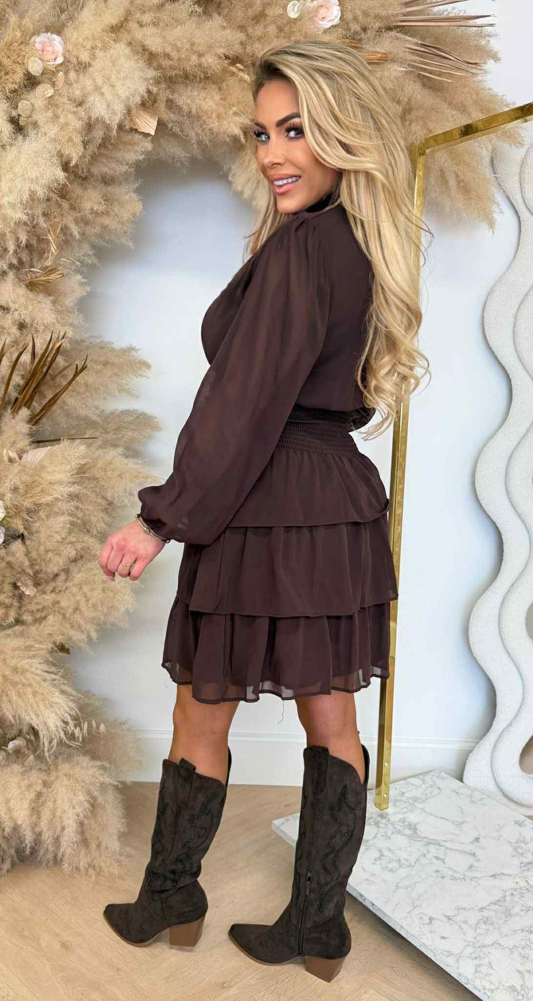RUFFLE GAUZE DRESS 5339-40 BROWN