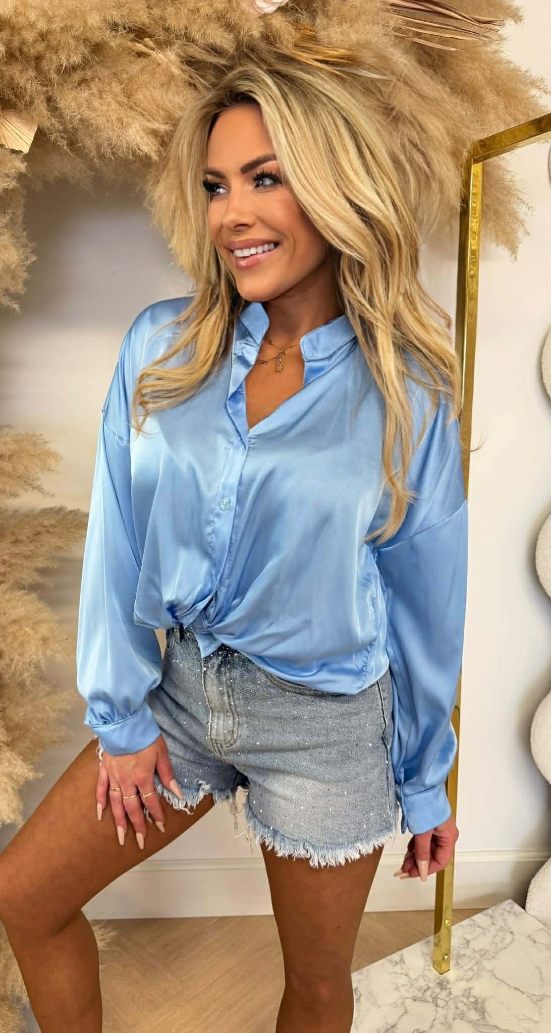 IT'S BACK! We hebben deze super leuke blouse opnieuw binnen met een satijnen look! In prachtige kleuren te shoppen. Wees er snel bij want deze is binnen no-time uitverkocht! HURRY!
