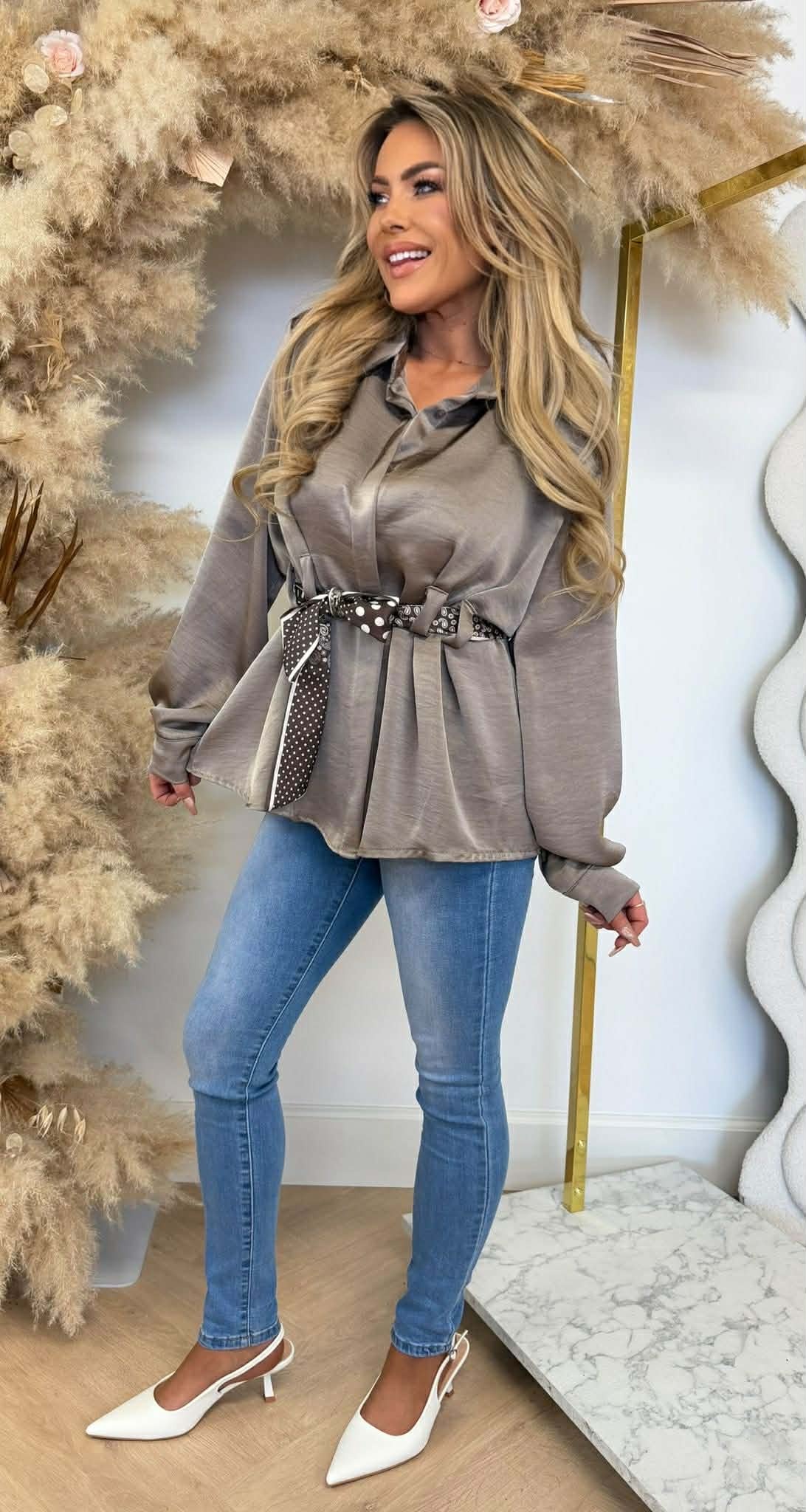SATIN LUS BLOUSE TAUPE