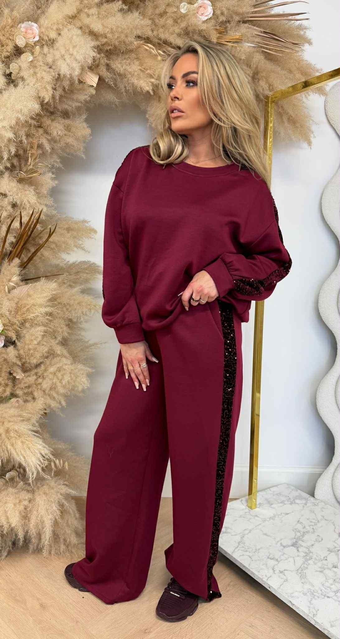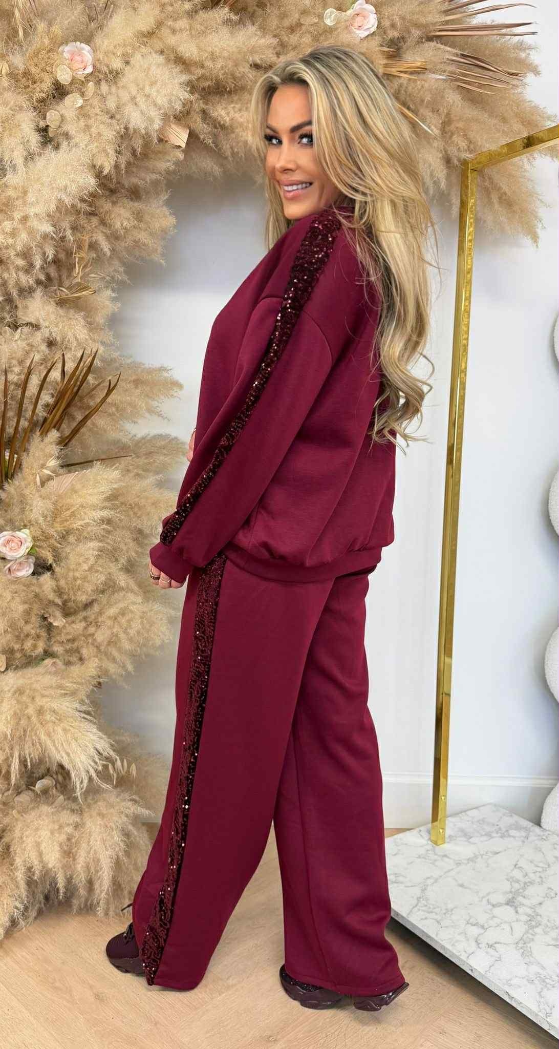 SEQUIN TRACK SUIT BURGUNDY