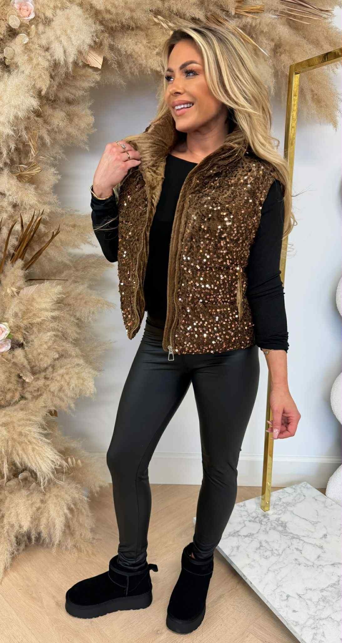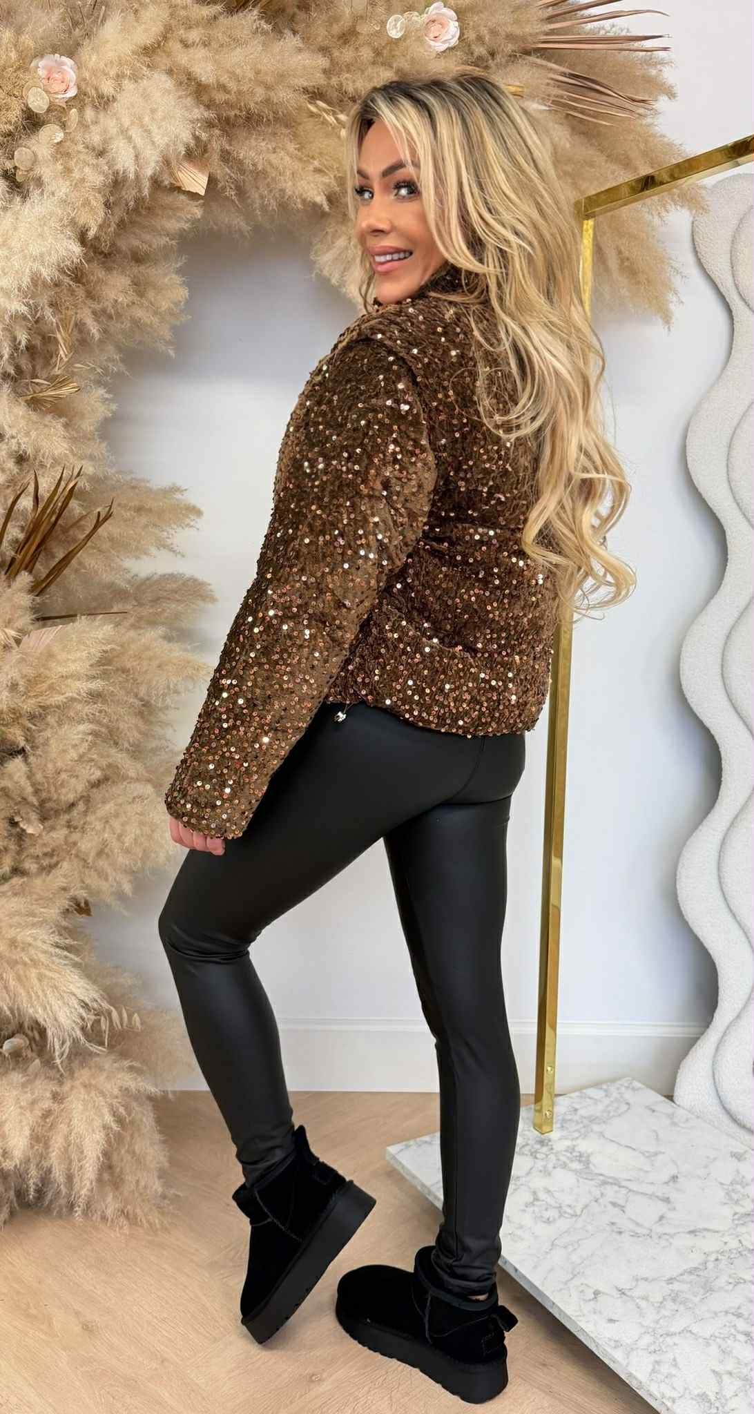 SEQUIN WINTERJACKET/BODYWARMER 2018 CHOCO