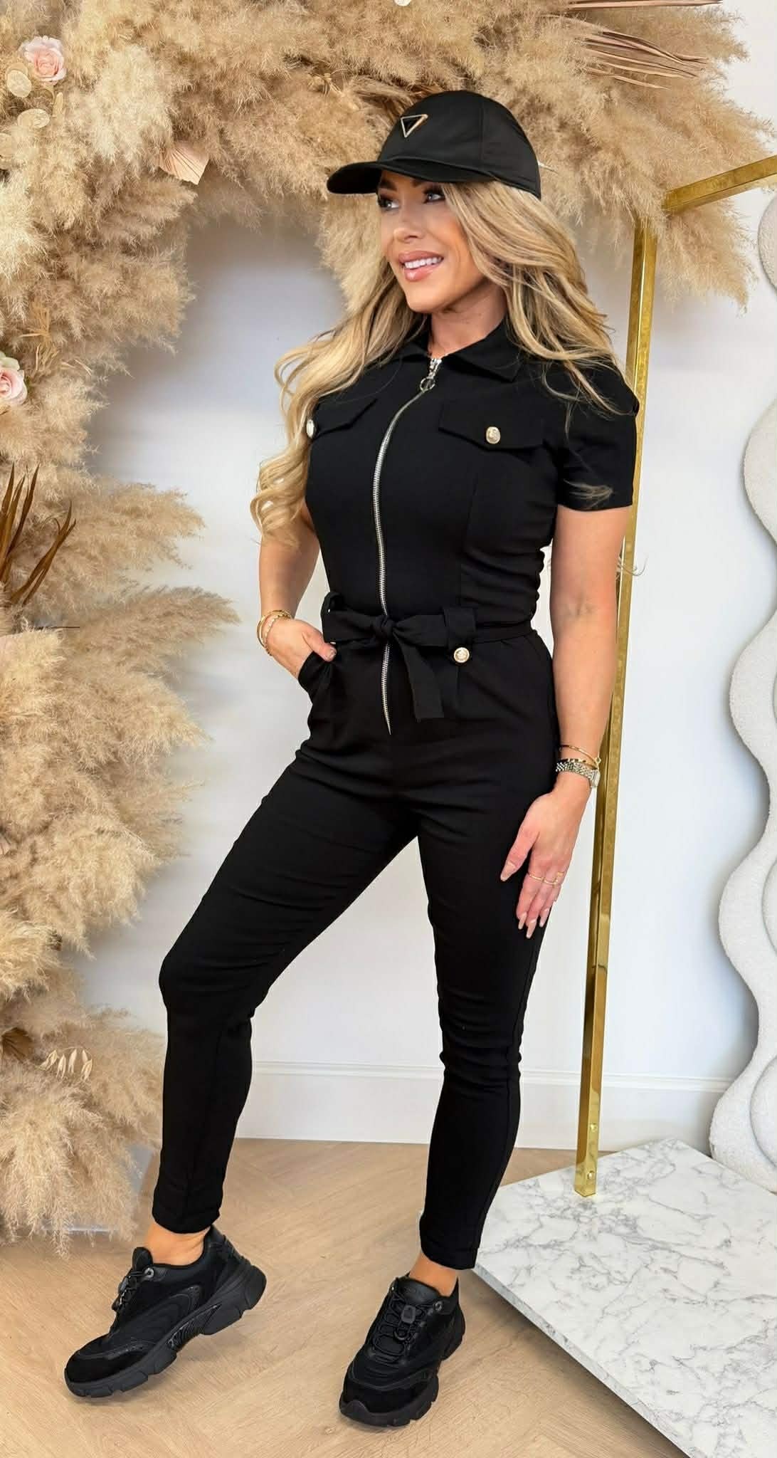YAY, IT'S BACK! Deze prachtige jumpsuit met buttons & een ritssluiting, is er weer met korte mouwen! De jumpsuit zit heerlijk!