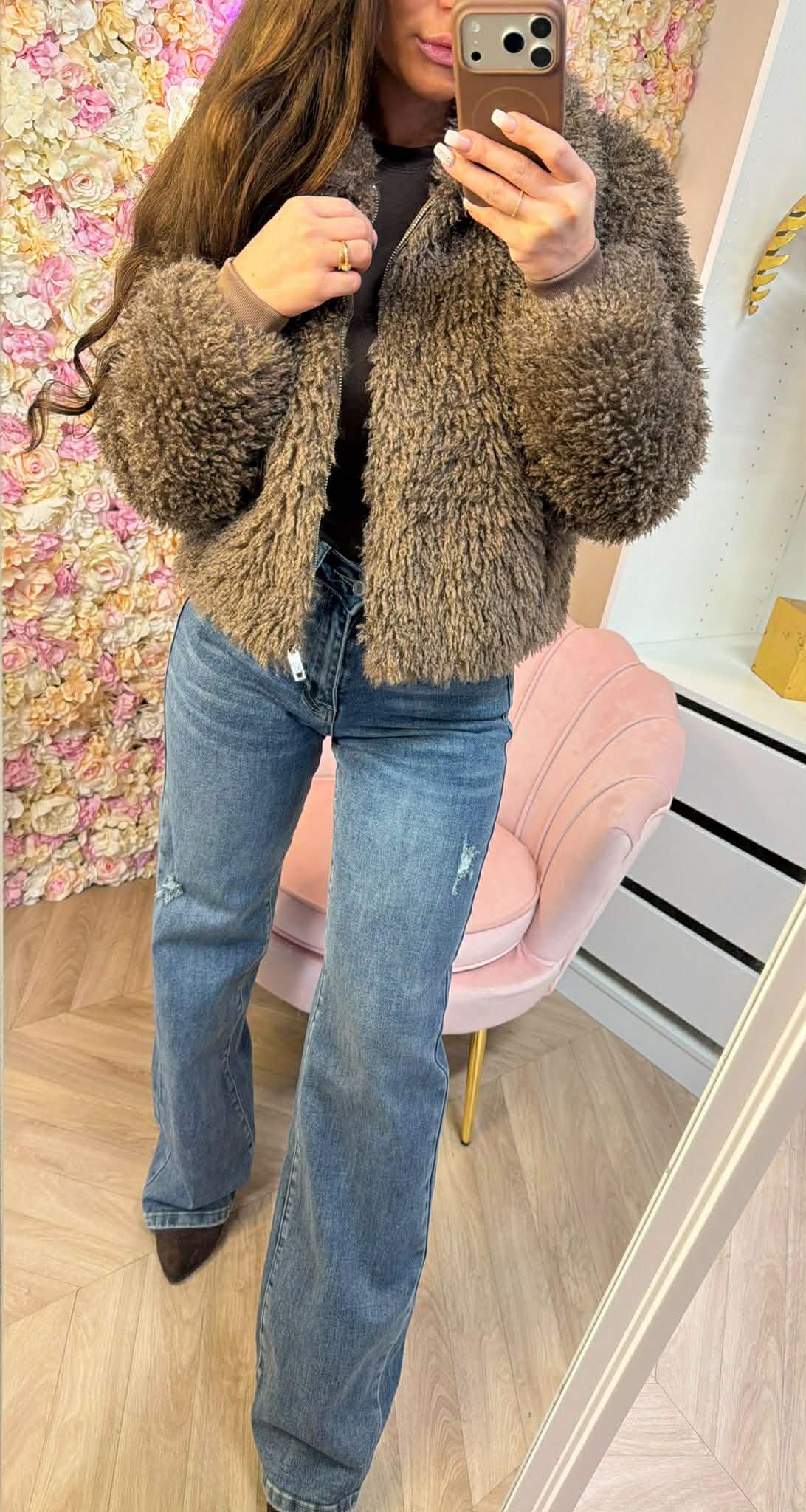 SHEEP VEGAN FUR JACKET 8799 TAUPE