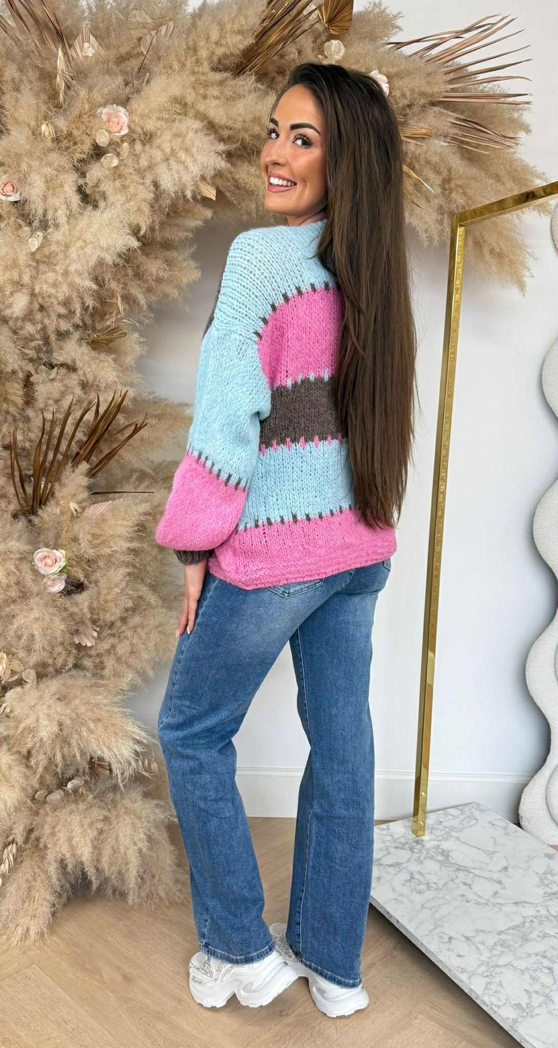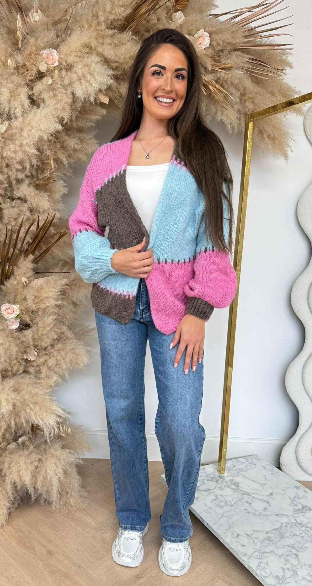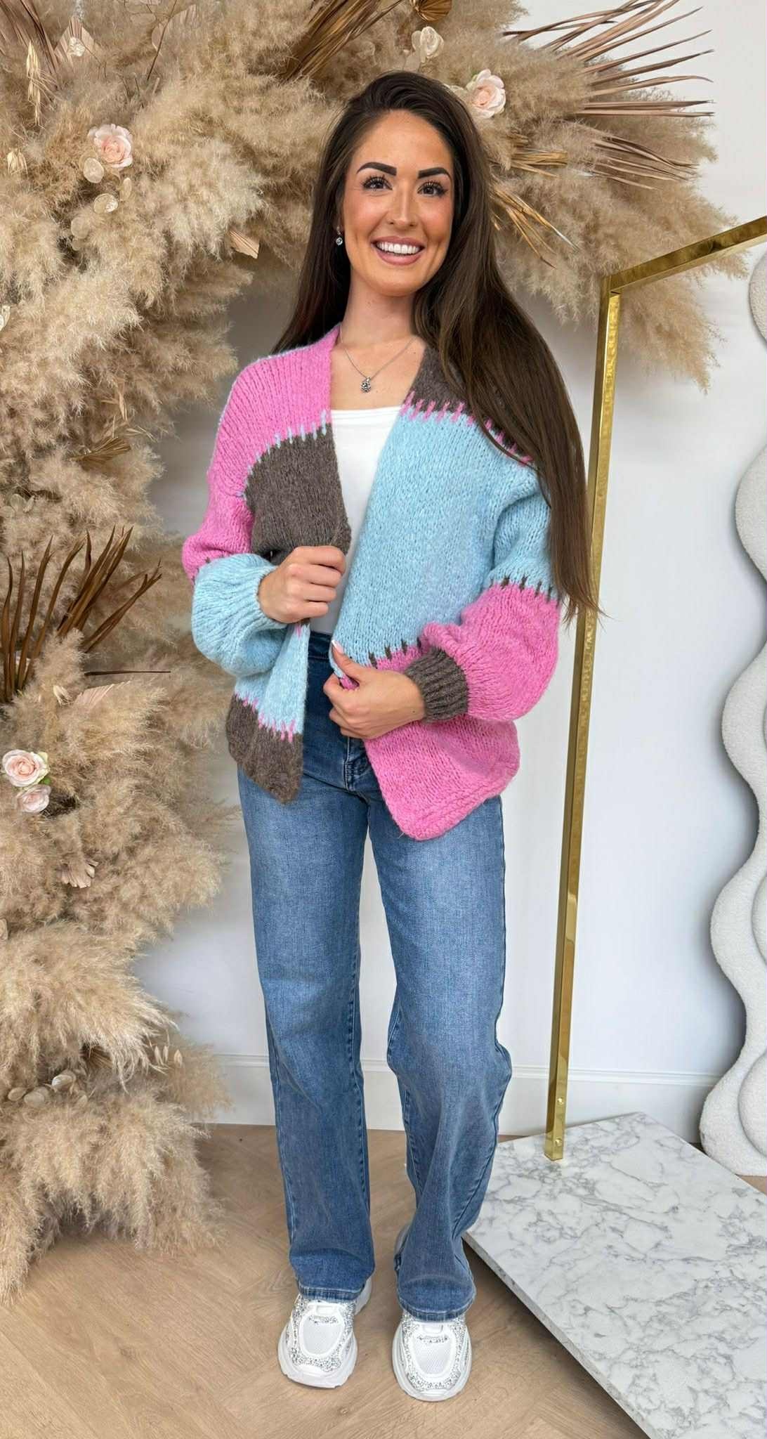 SNUGGLE ME SOFTLY CARDIGAN BLUE/PINK/TAUPE