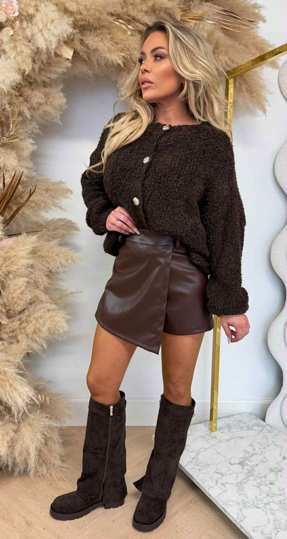 SOFT TEDDY BUTTON VEST/SWEAT 0165 CHOCO
