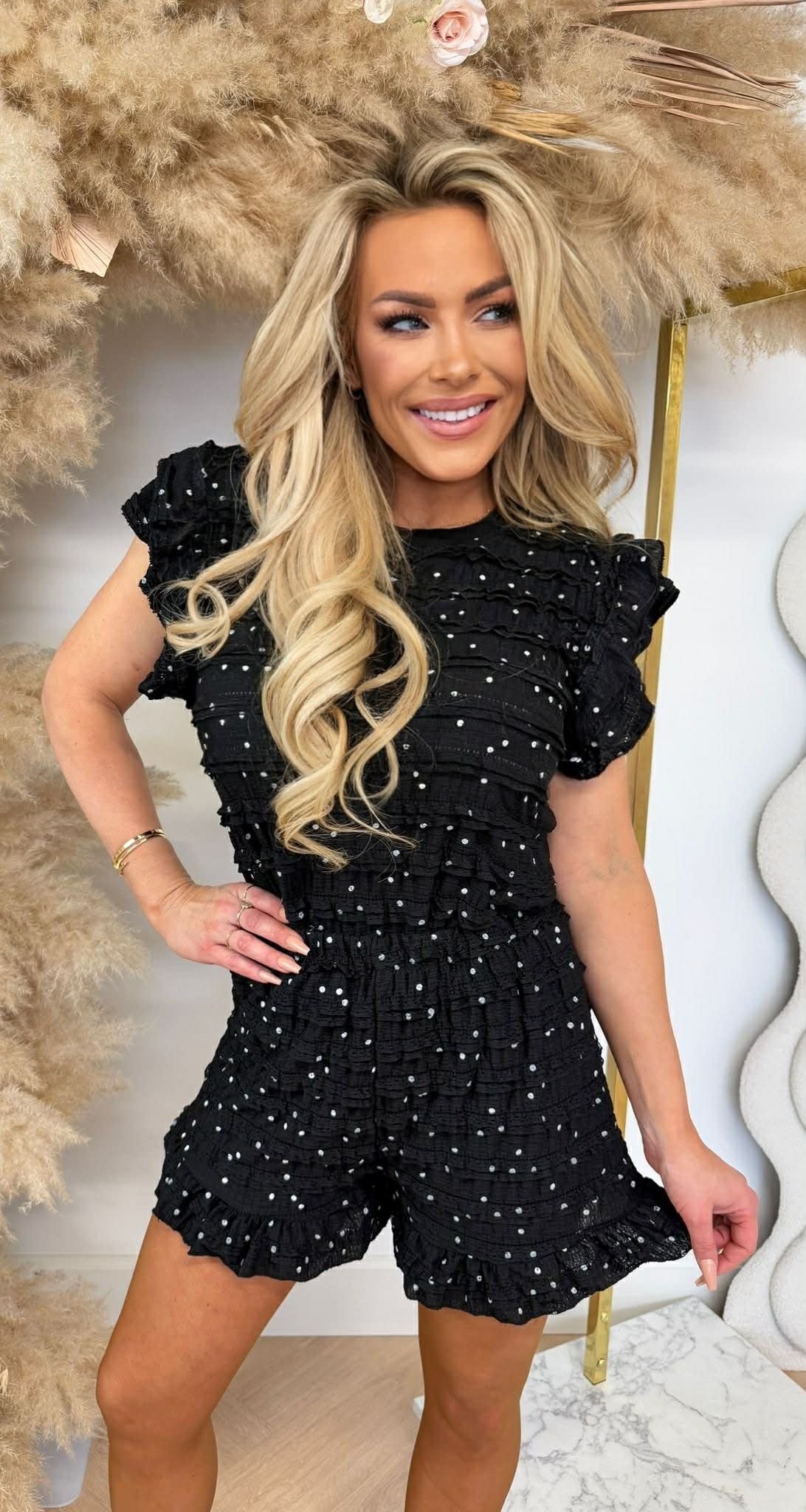 Wauw, wat een beauty! Deze set MOET je hebben. Gemaakt van een heerlijke stof, wow! En super leuke ruffle details met dots... amazing!