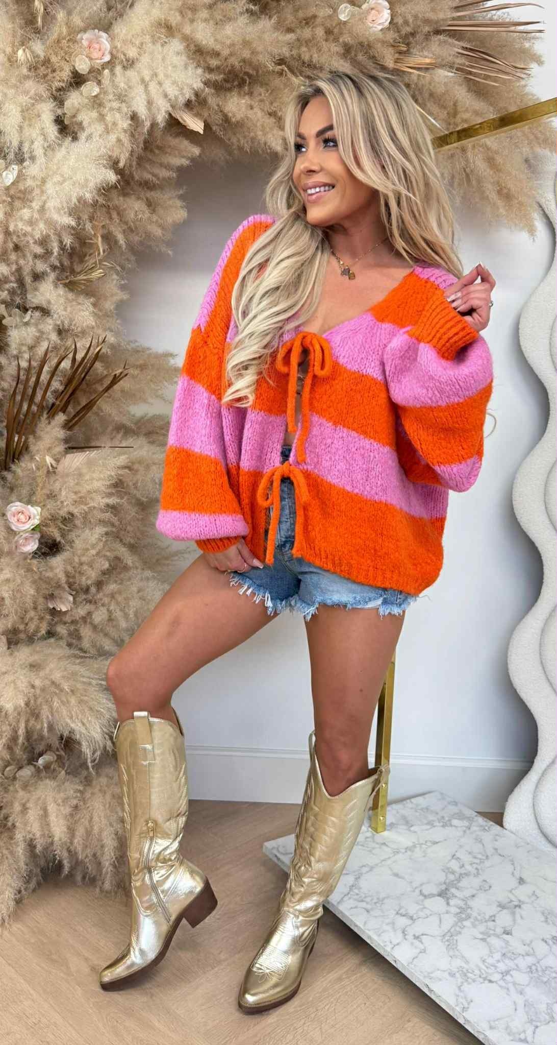 STRIPE STRIKJES TRUI/VEST 31003 PINK/ORANGE