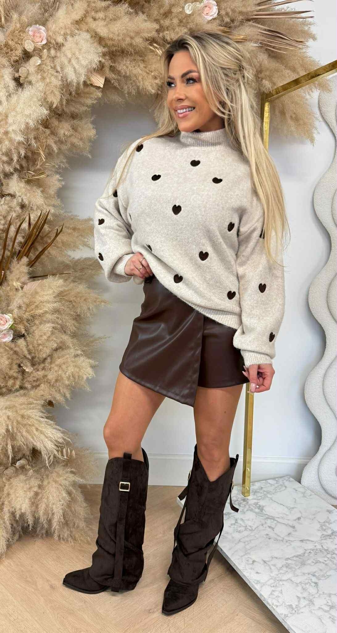 Hoe cute is deze hartjes sweat met turtle nek? Wij vinden deze sweat echt amazing!