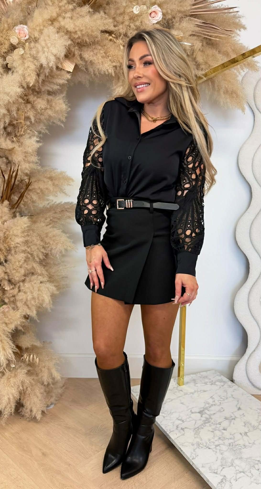 VENESSA LACE MOUW BLOUSE 6308 BLACK