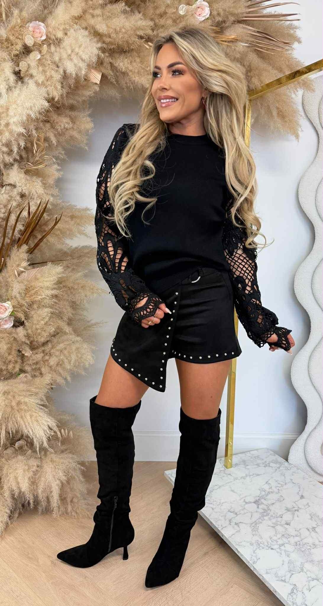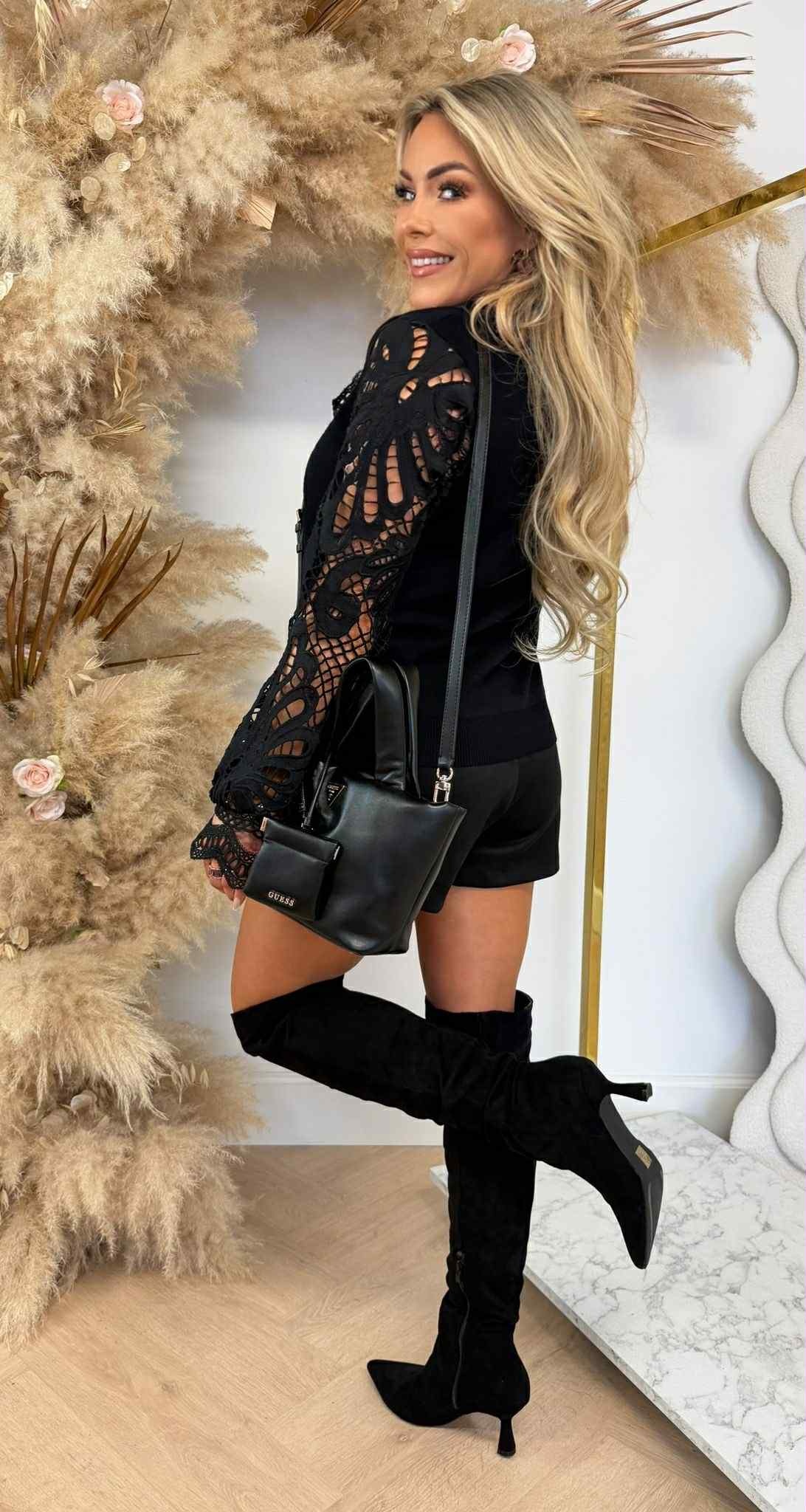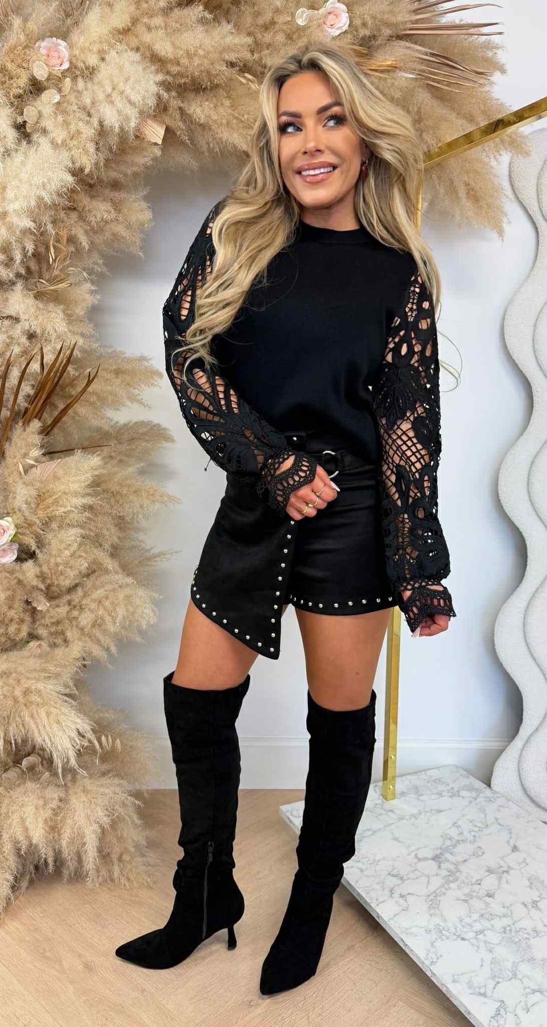 VENESSA LACE SLEEVE SWEAT 6301 BLACK