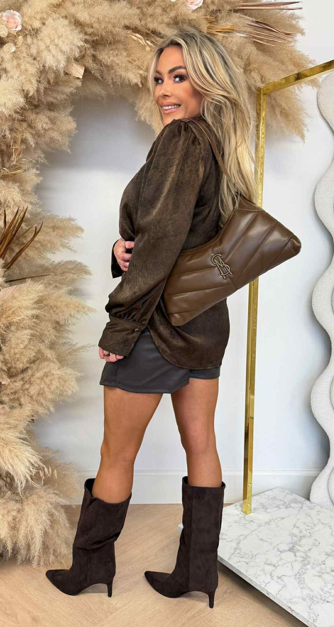 WASHED SHINING BLOUSE *H* 8573 BROWN