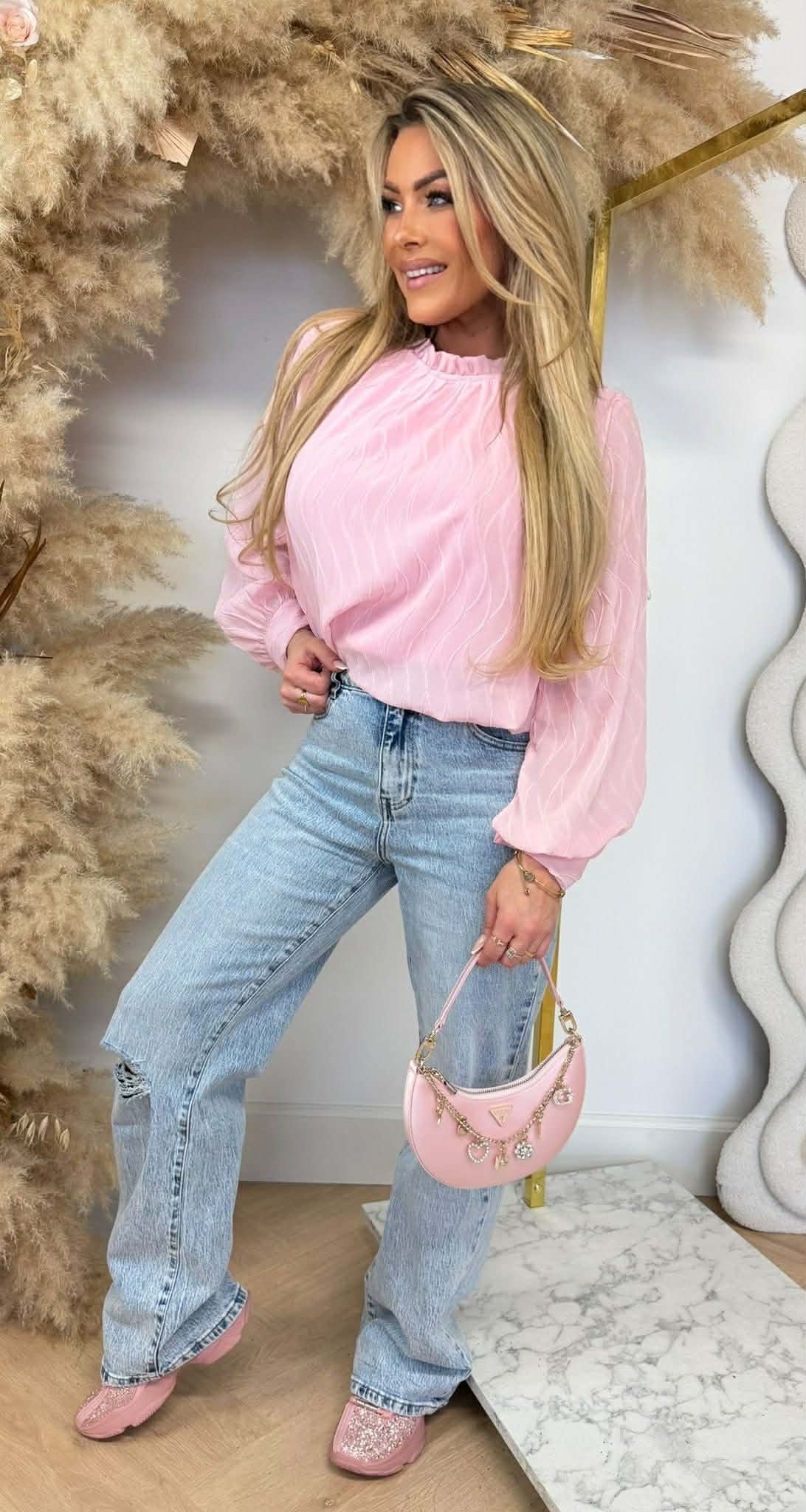 WAVY CROPPED BLOUSE PINK