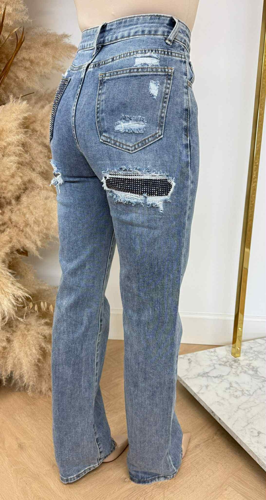 WIDE LEG GLITTER POCKET JEANS 936-2 DENIMBLUE