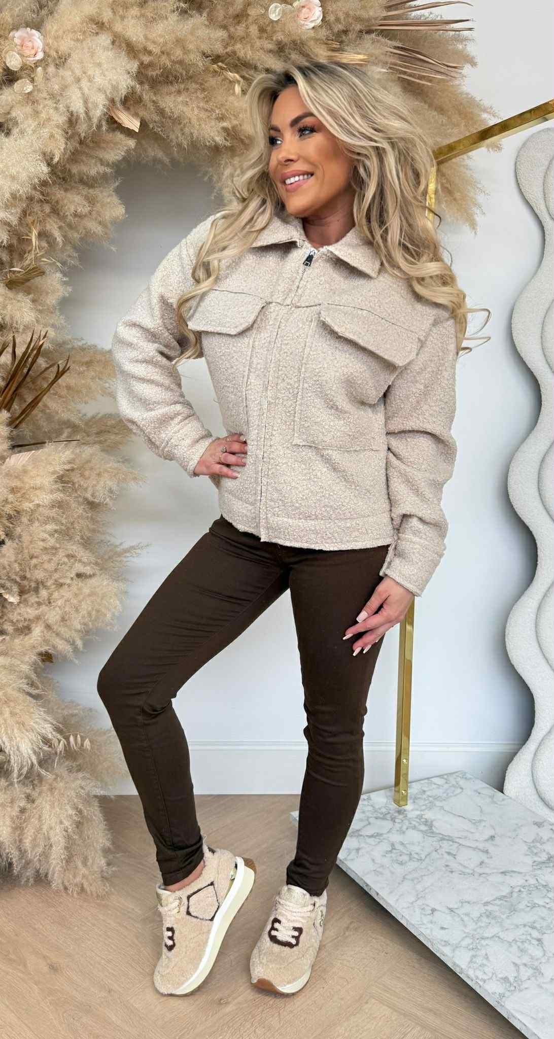 ZIP BOUCLE JACKET LIGHTBEIGE