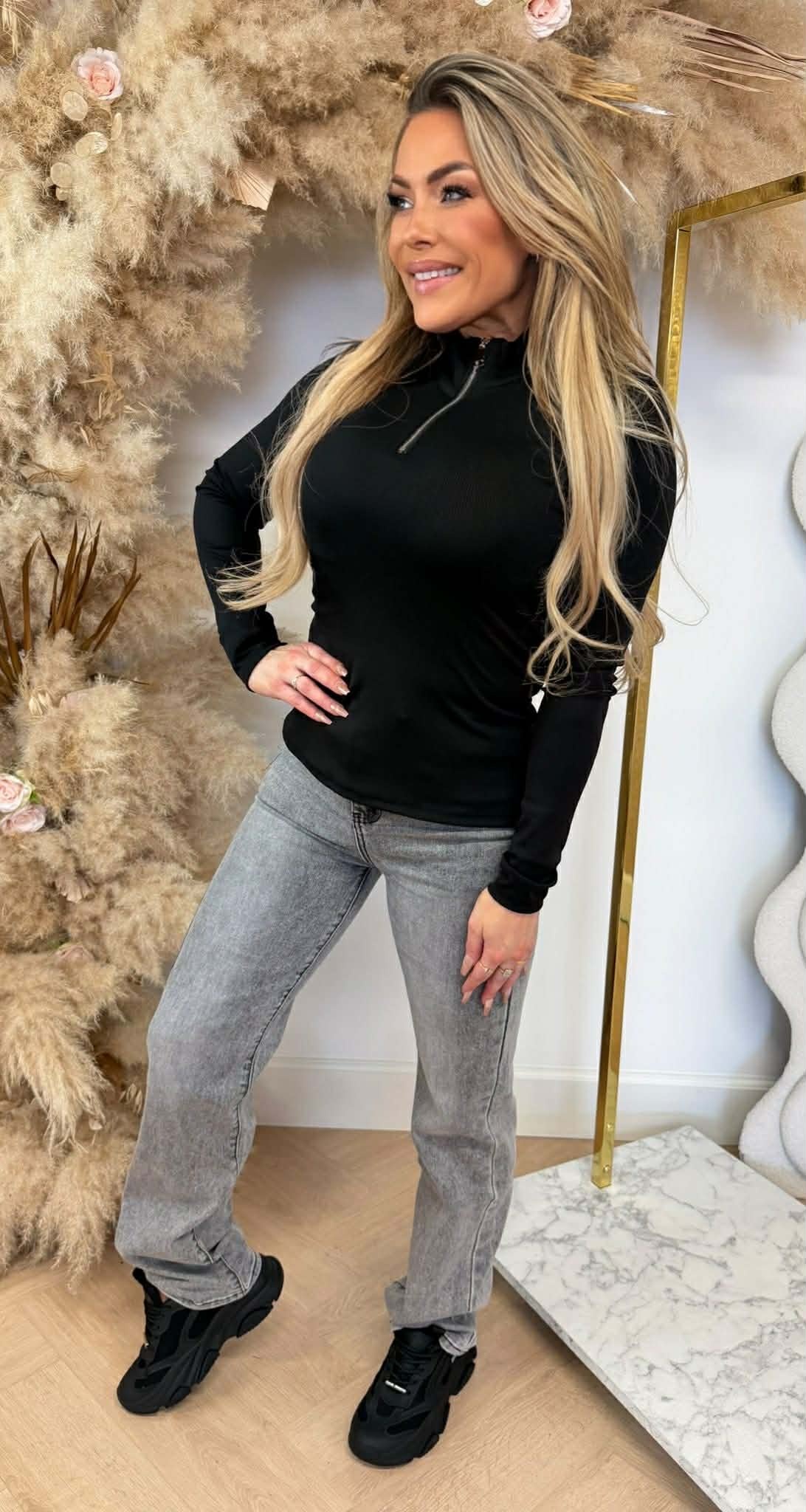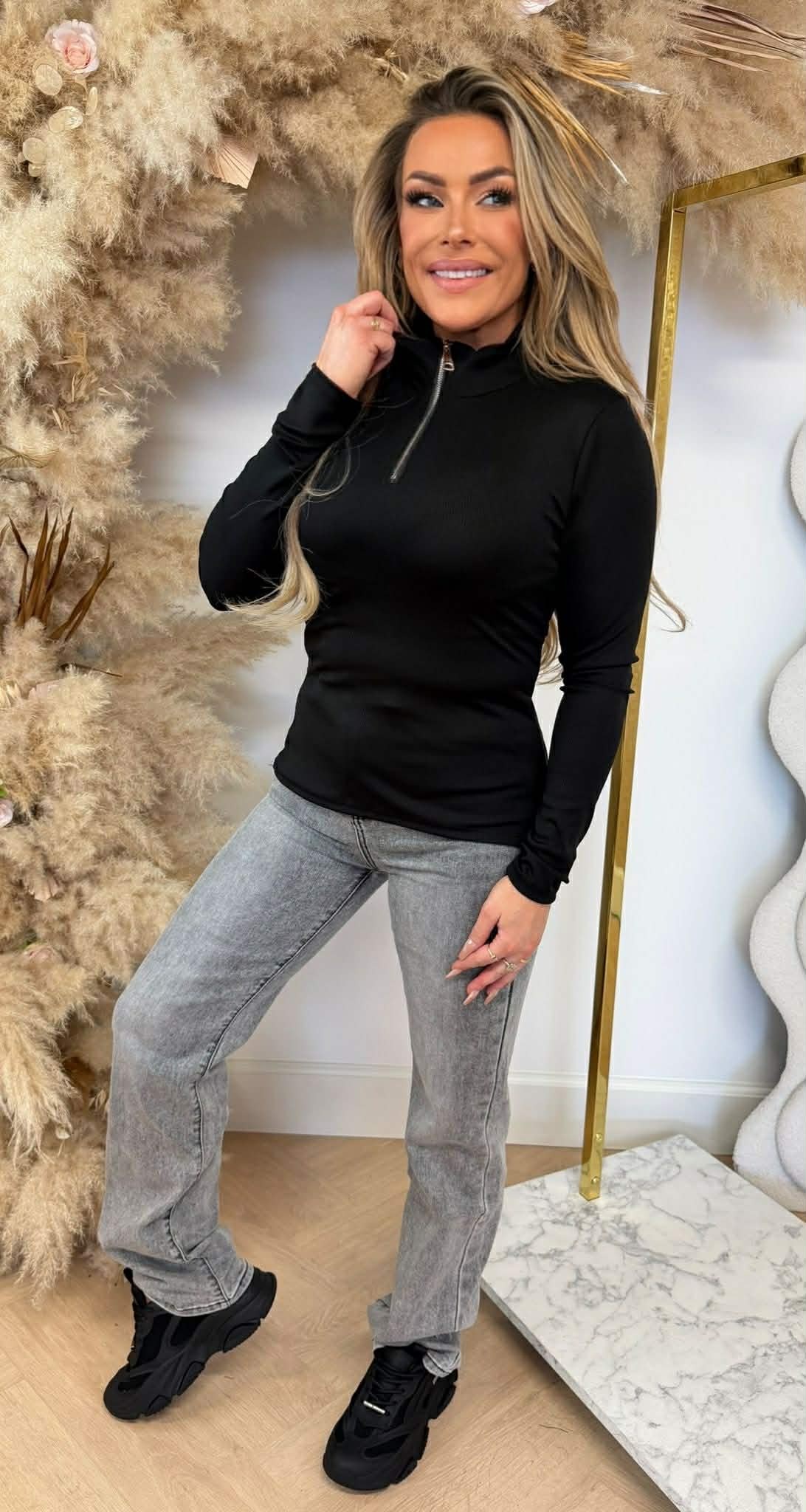ZIP UP RIB TOP BLACK